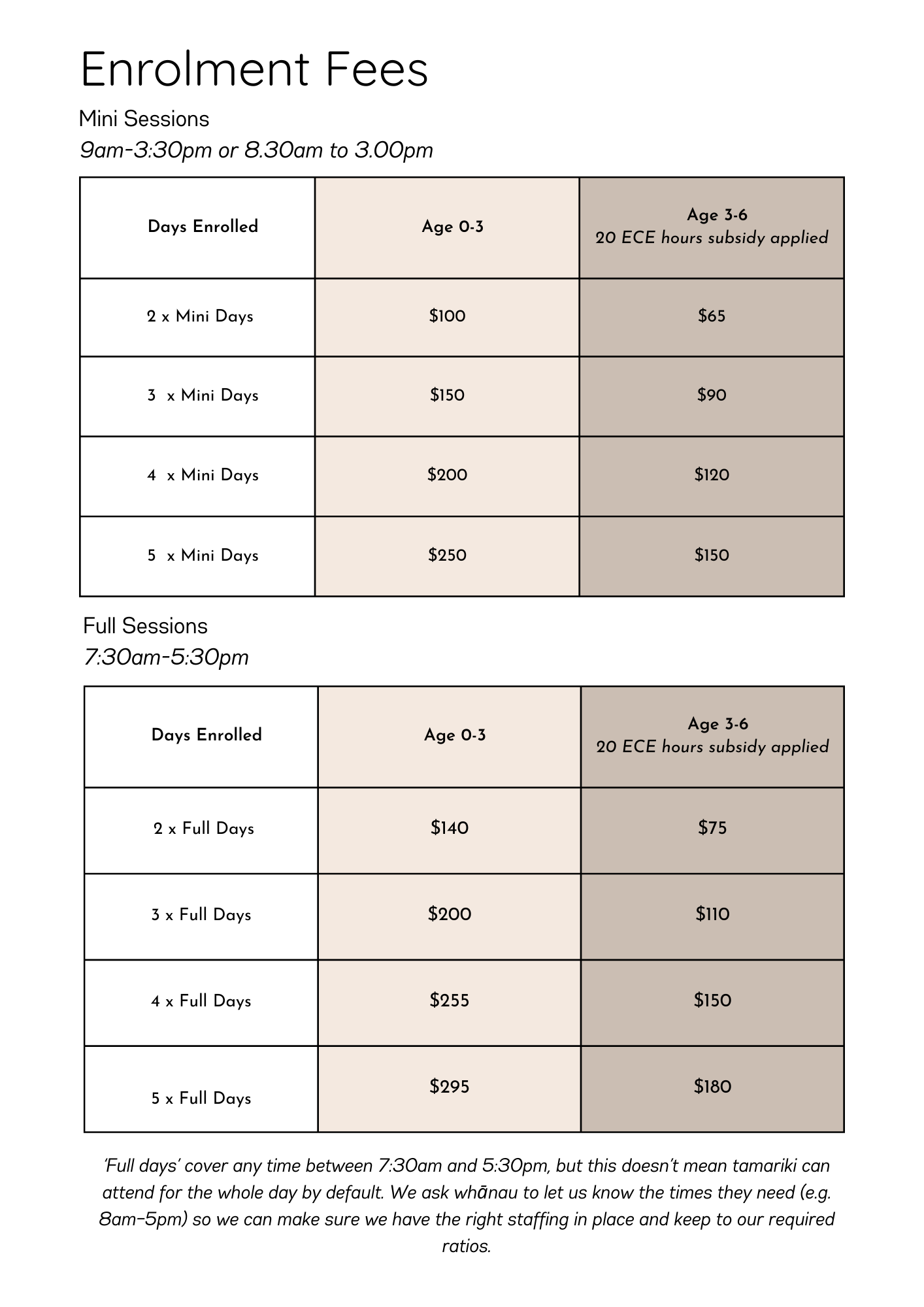 Once you have a space confirmed a $100 non-refundable administration fee is charged to secure your enrolment.
